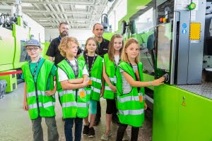Under the motto “From old to new: plastics in the material cycle”, the workshop was all about sustainability. A topic that has particular relevance for ENGEL as a company in the plastics industry. “A modern, sustainable life is only possible with plastics,” Engleder makes clear. “To achieve this, however, we have to change the way we use it.” With its research and development work, ENGEL is making an important contribution to making processed plastic waste usable for a wide range of applications and expanding global recycling capacities. Introducing children and young people to the subject at an early age is crucial, because smart minds are needed to master the challenges of the future. “Our youth must realise that they have it in their hands to shape a better future with their career choice,” Engleder emphasises.